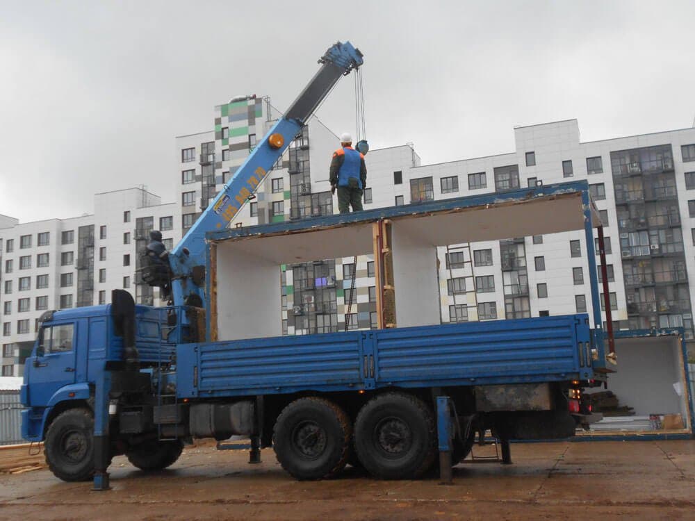 Нередко готовые конструкции поставляются на место в собранном виде, тогда используются методы установки бытовок манипулятором. Сооружение имеет специальные пазы для безопасной транспортировки. Установка бытовок краном осуществляется быстро, потому что сборка элементов не требуется. Услуги монтажа и демонтажа блок-контейнеров можно заказать по телефону или оставить заявку на сайте ,предварительно обсудив с менеджерами компании «СПК Ванда» и подробную специфику сотрудничества.